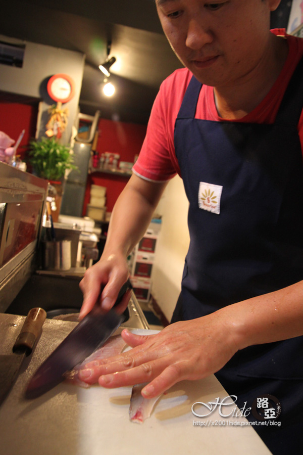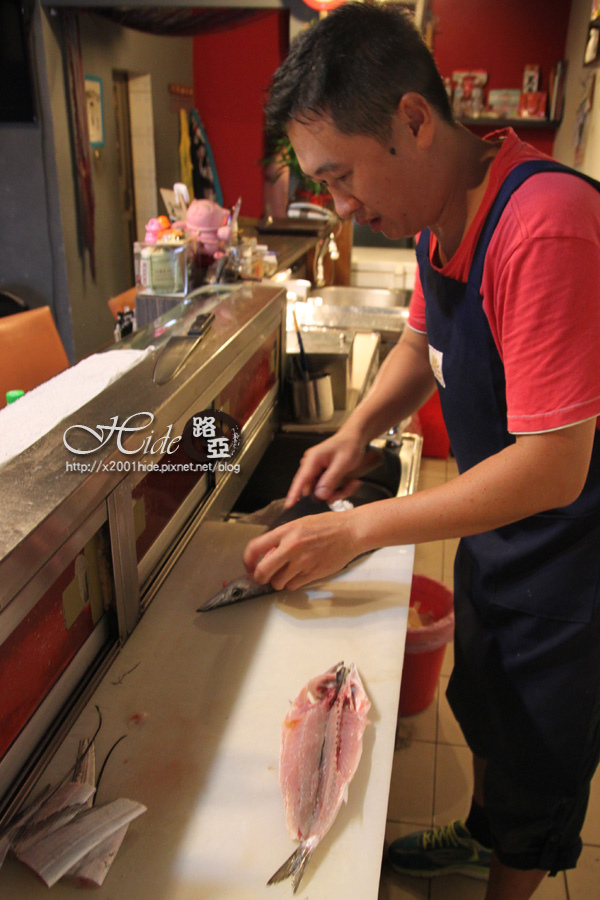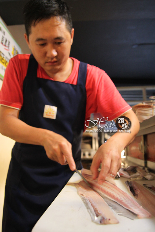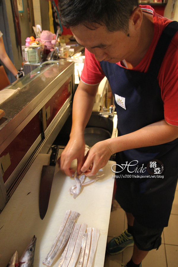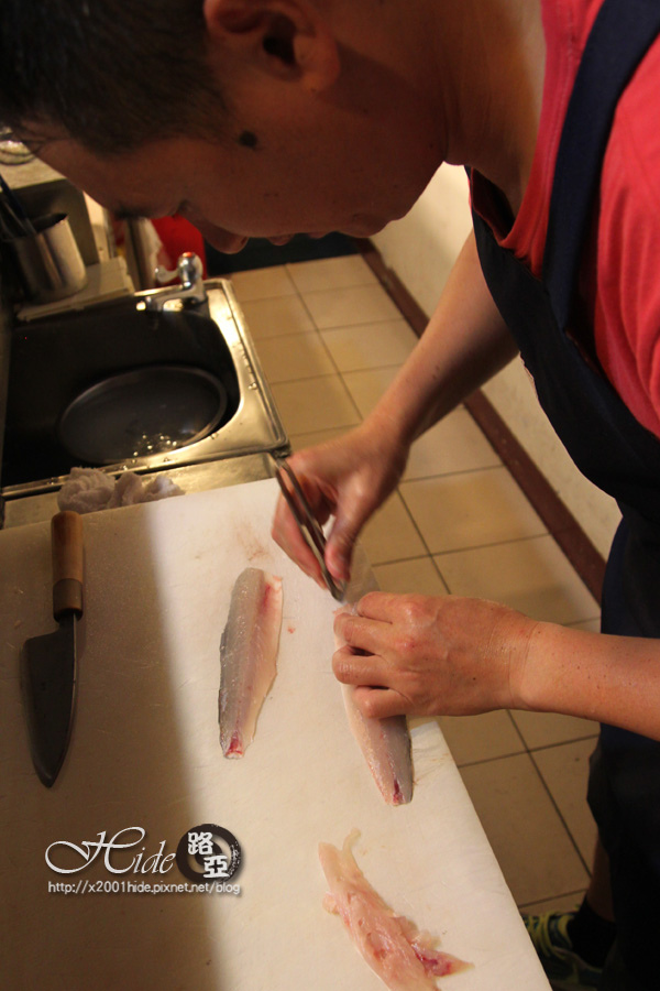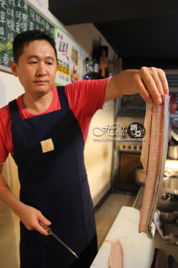 勢活動,今天選用食材是昨晚釣起的五指太刀魚,畢竟這麼大的白帶魚