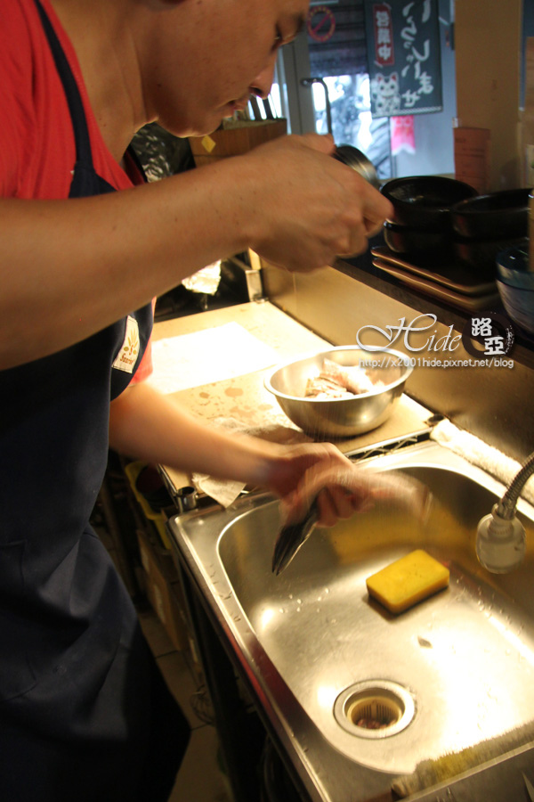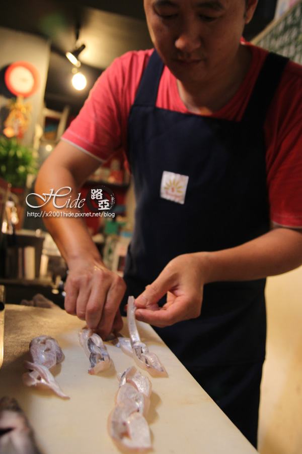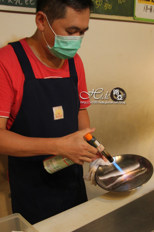嘗試,魚表皮經由高速噴燈炙燒焦黃後,不但讓魚肉有熟