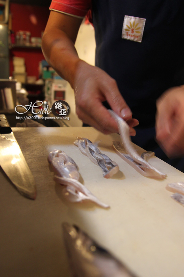 郭老闆告知太刀魚很不好切,所以要選用四指一上大小的太刀魚食材