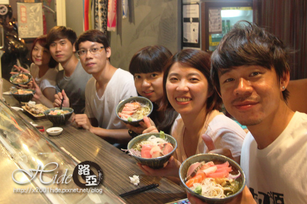 放上些 蘿蔔絲+蝦卵+芥末 最後在淋上些醬油